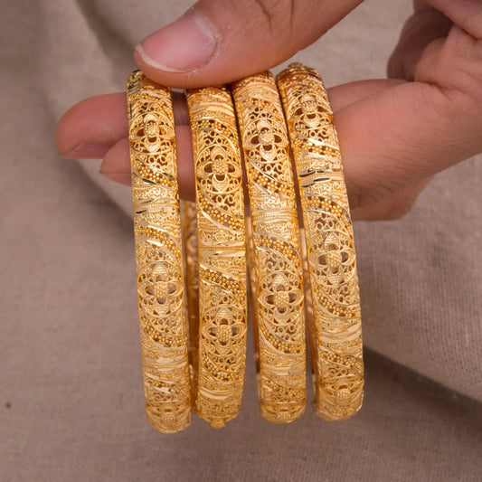 4Pcs Set 24K Dubai Bangle Women Gold Color Jewelry Copper 18 k GF Dubai Bracelet for Women for Occasions wedding bridal