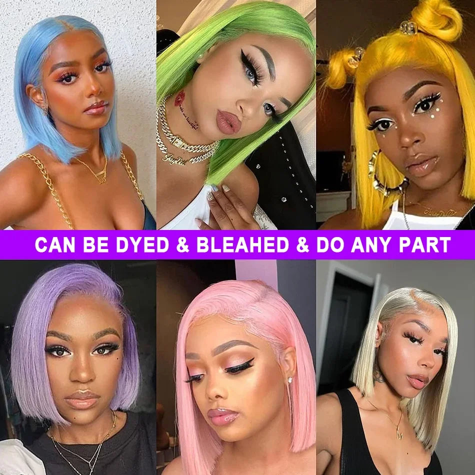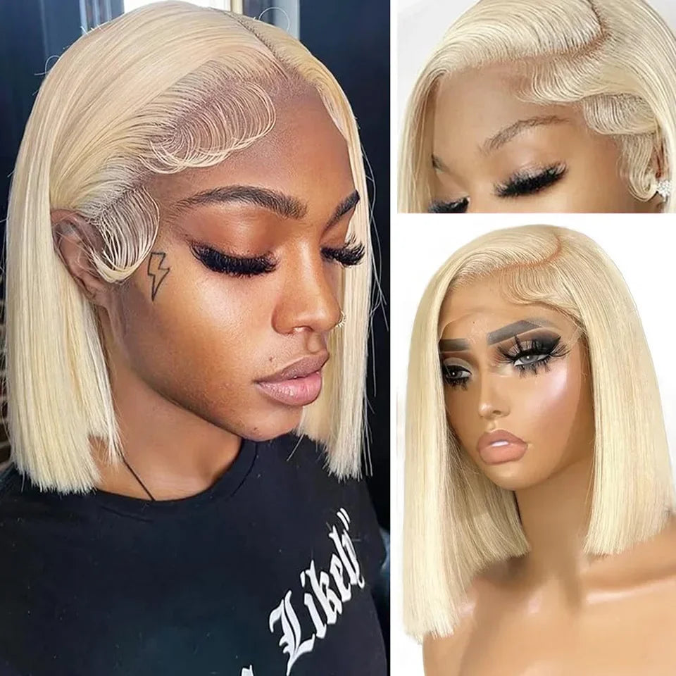 200 Density Blonde Straight Bob Wig HD Transparent Lace Pre Plucked Human Hair Wig 13x4 13x6 Lace Frontal Wig For Black Women