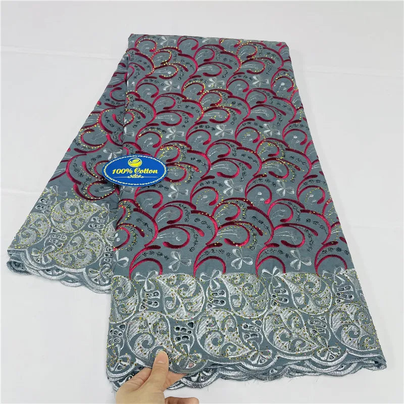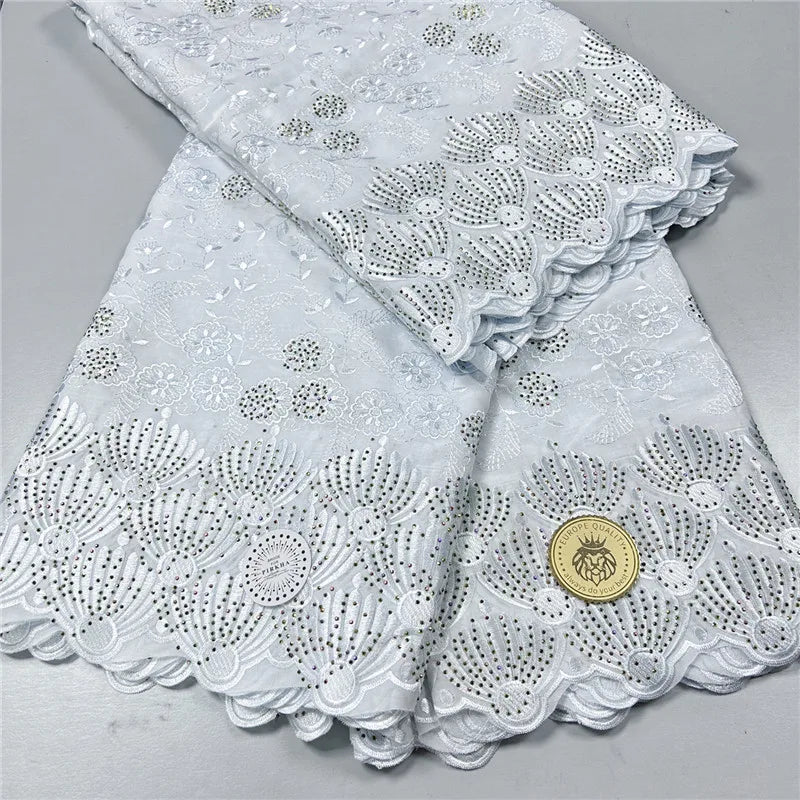 ثوب توتال فوال سويسري طول 4.5 متر في عرض 120 سنتيمتر مطرز كريستال عالي الجودة 100% قطن