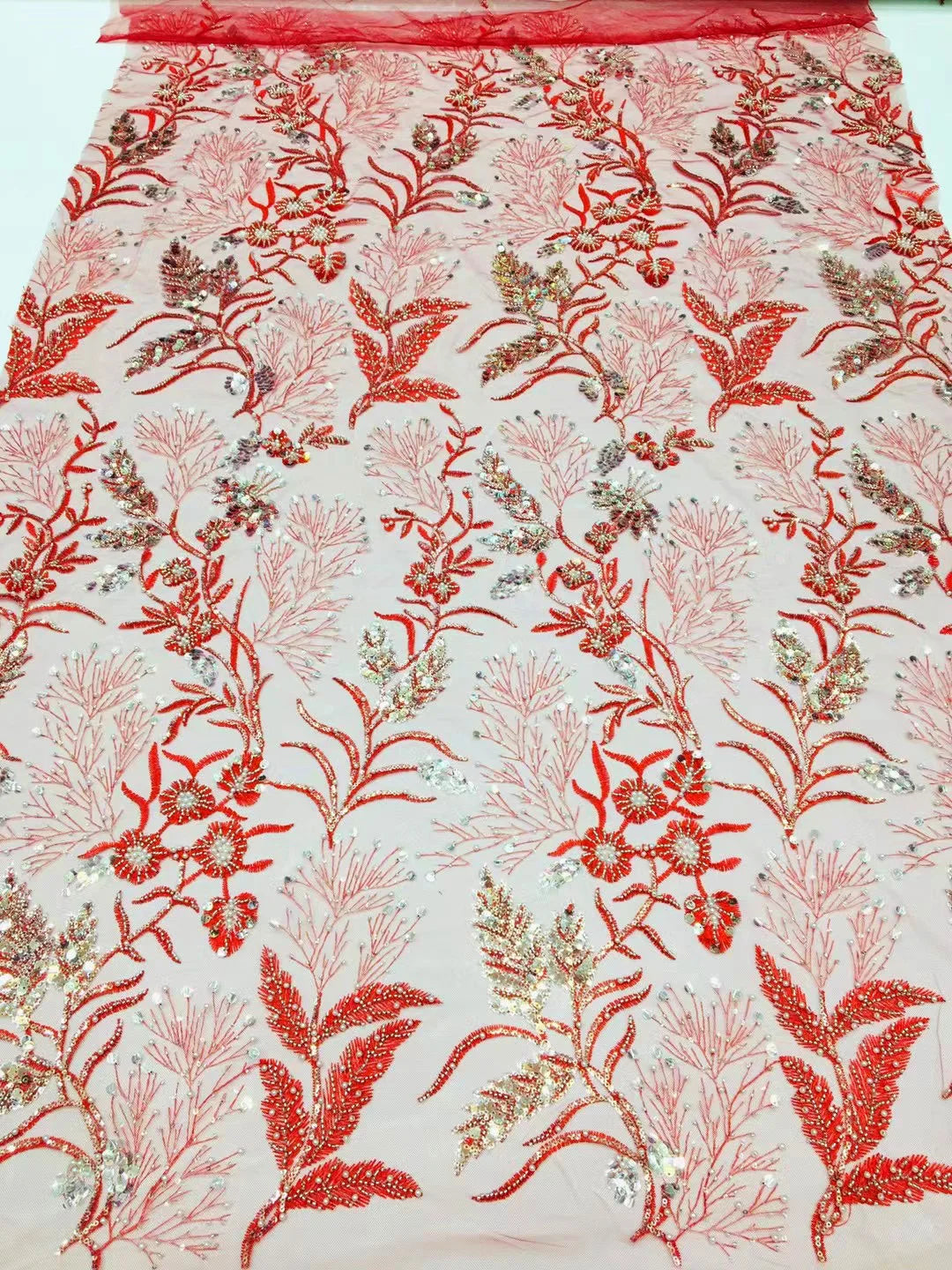 ثوب تُل فرنسي طول 4.5 متر في عرض 130 سنتيمتر من الدانتيل الفرنسي المطرز بالترتر و الخرز