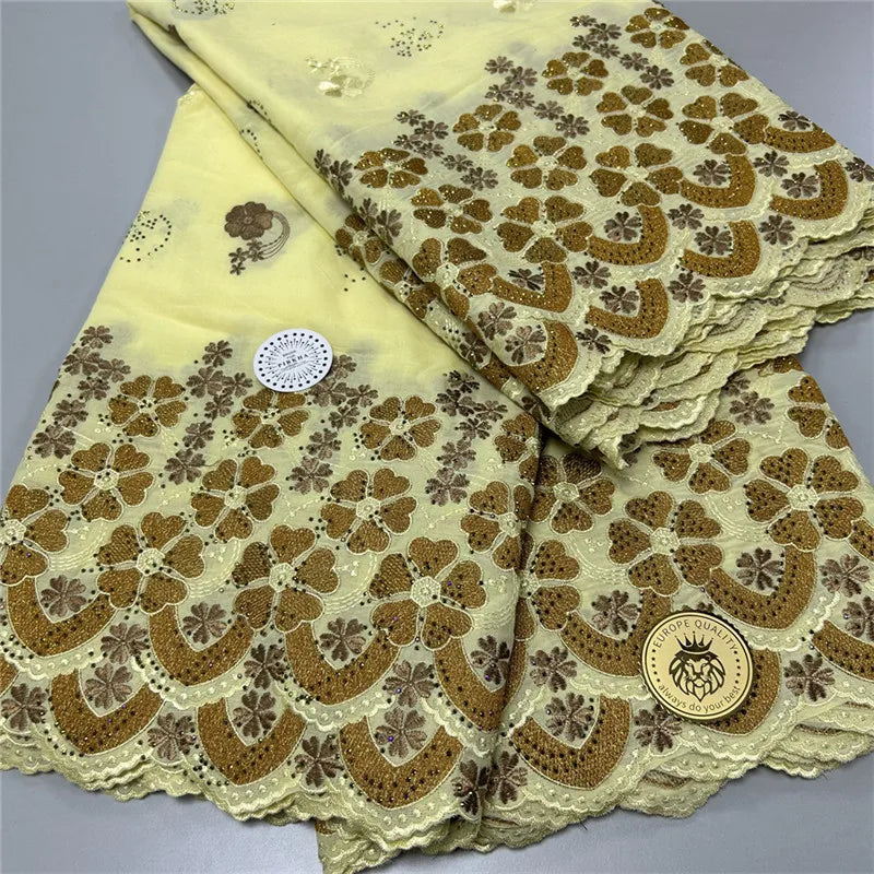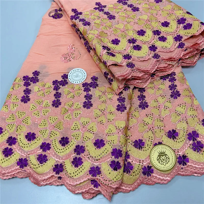 ثوب توتال فوال سويسري طول 4.5 متر في عرض 130 سنتيمتر مطرز كريستال عالي الجودة 100% قطن
