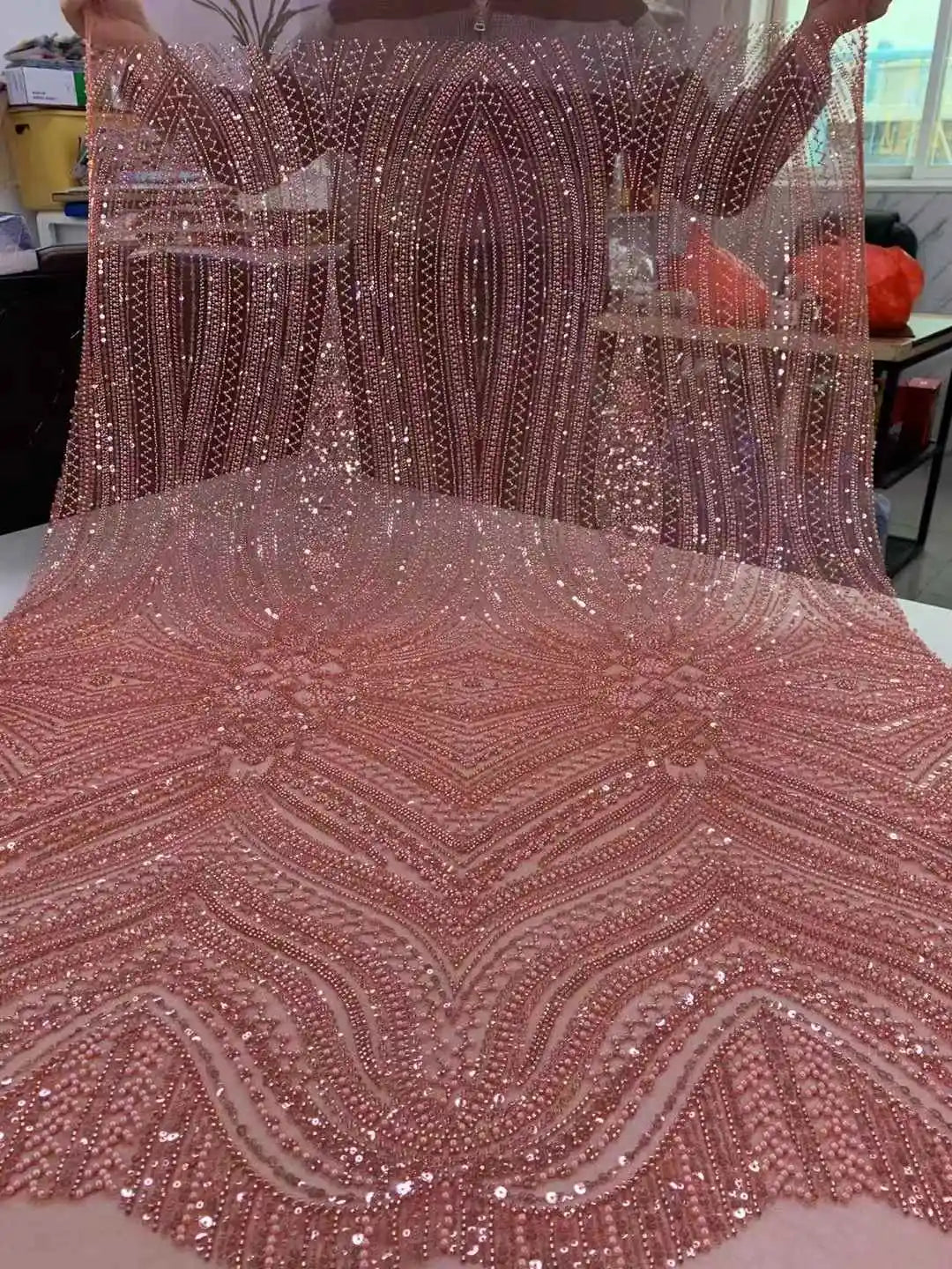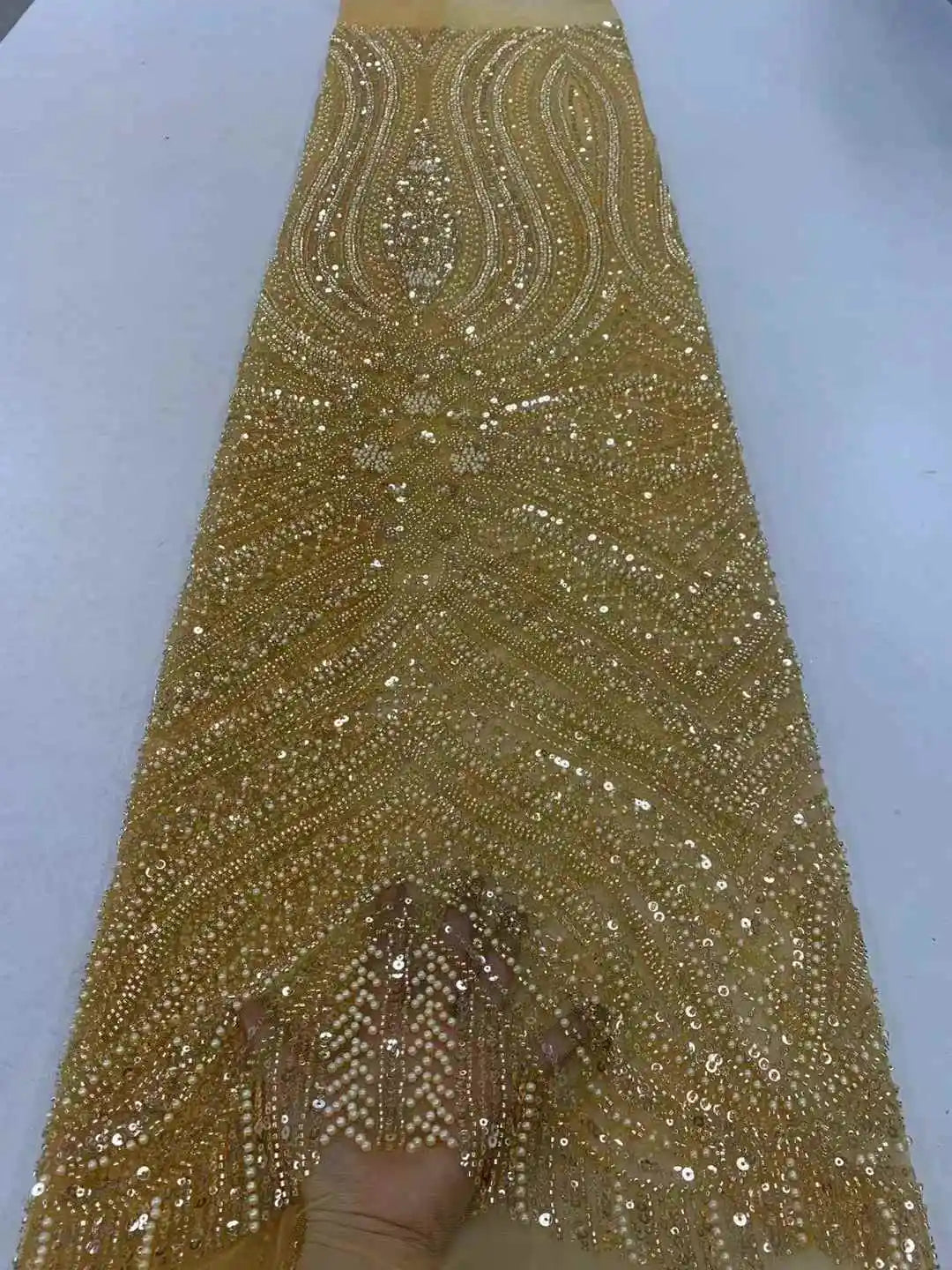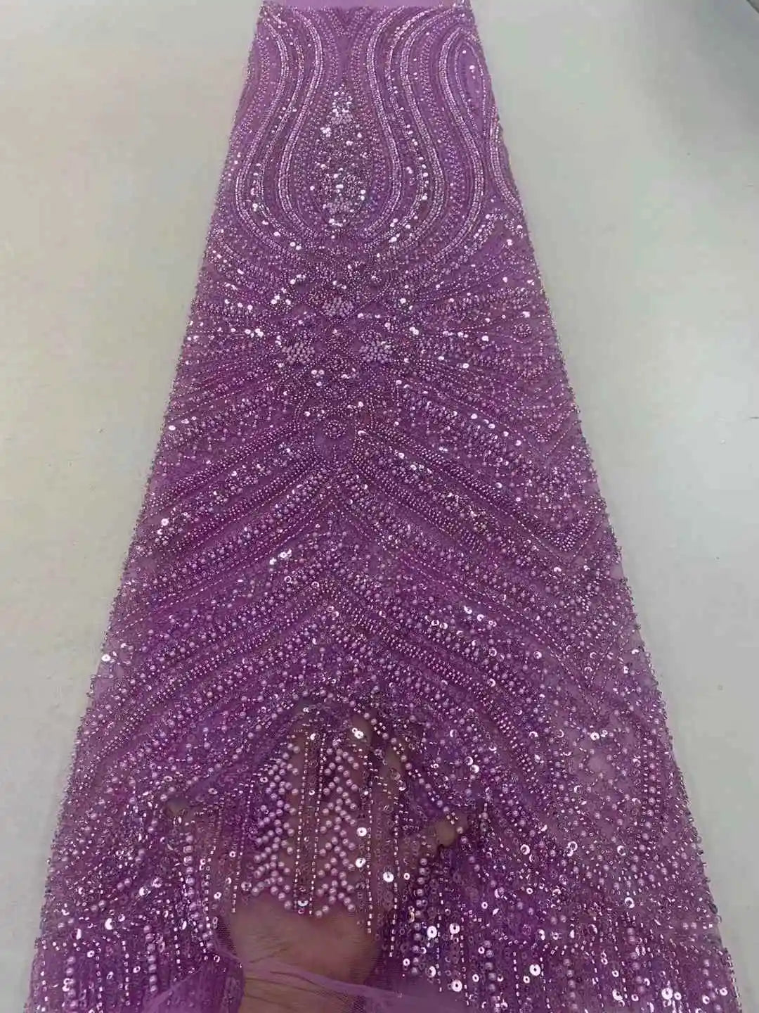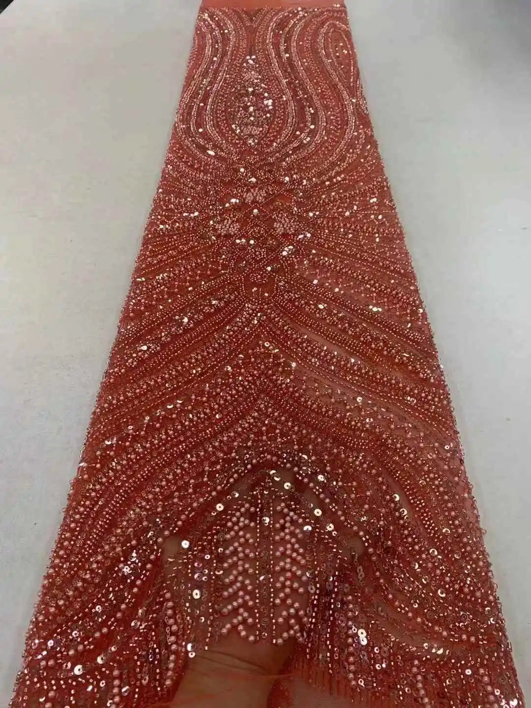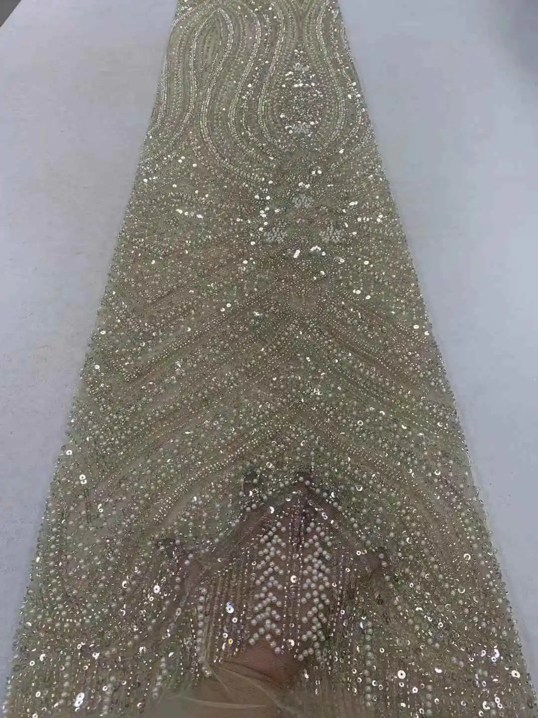 ثوب تُل حرير فرنسي طول 4.5 متر في عرض 120 سنتمتر من الدانتيل المطرز الفاخر