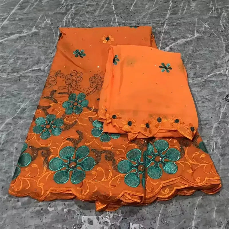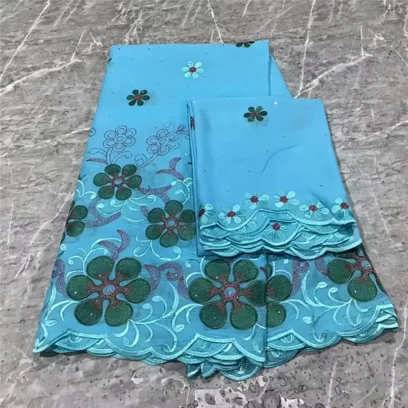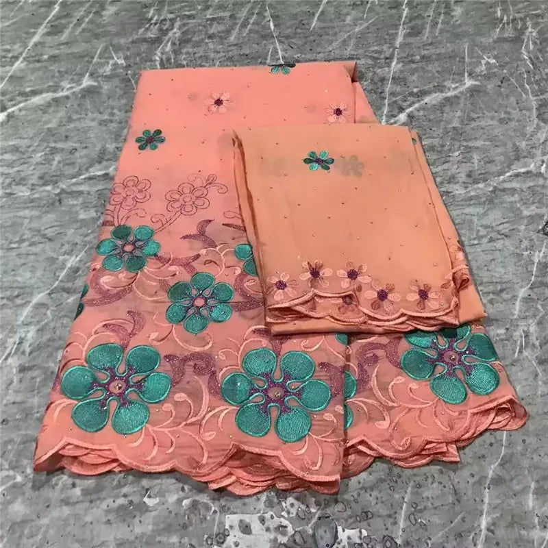 ثوب توتال فوال سويسري طول 4.5 متر في عرض 130 سنتمتر مطرز عالي الجودة 100% قطن موديلات دبي + 2 متر هدية لنفس التصميم