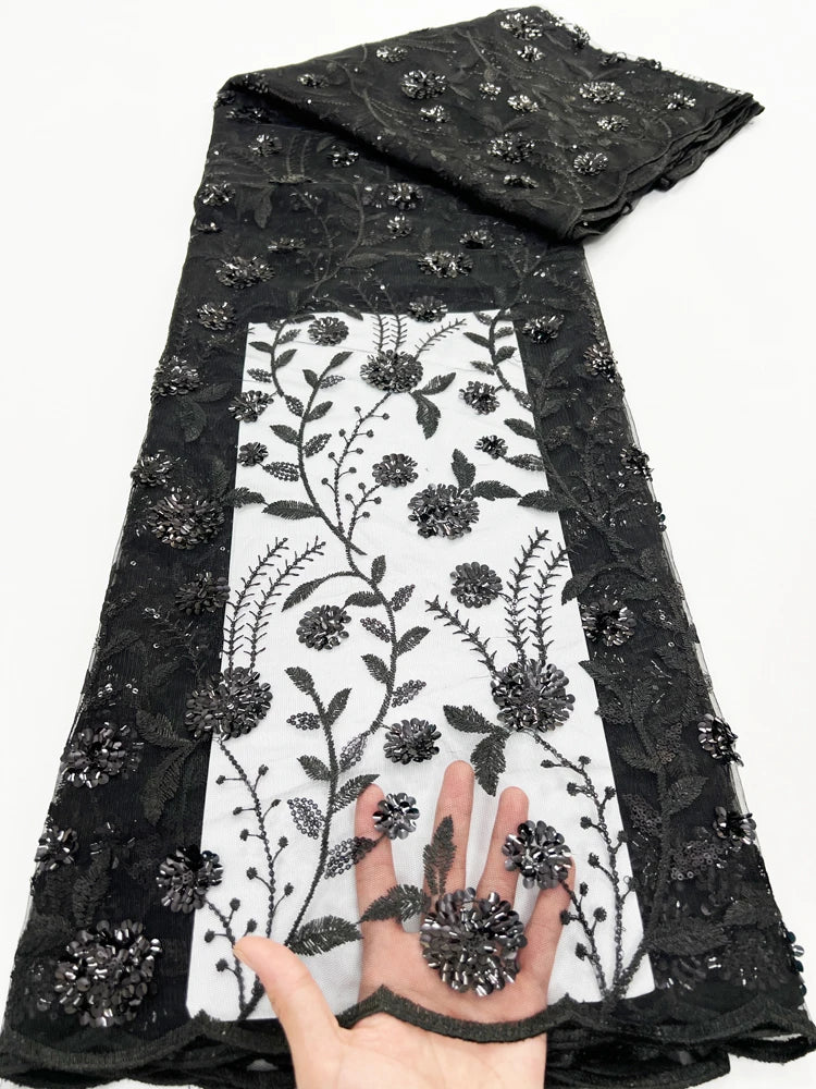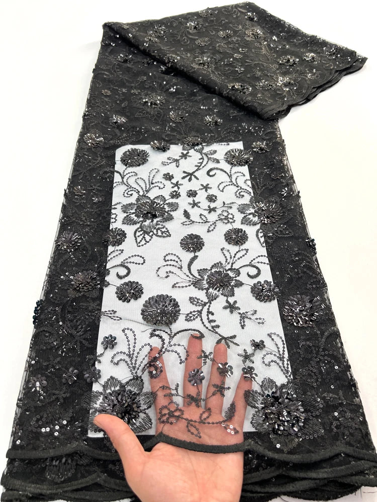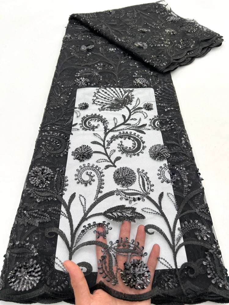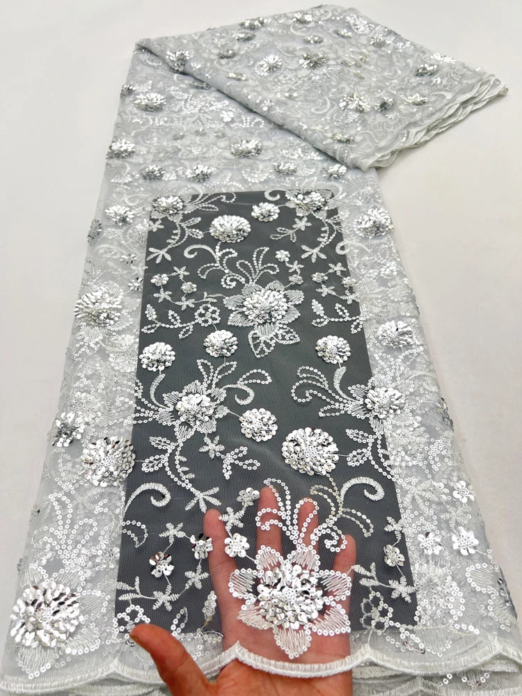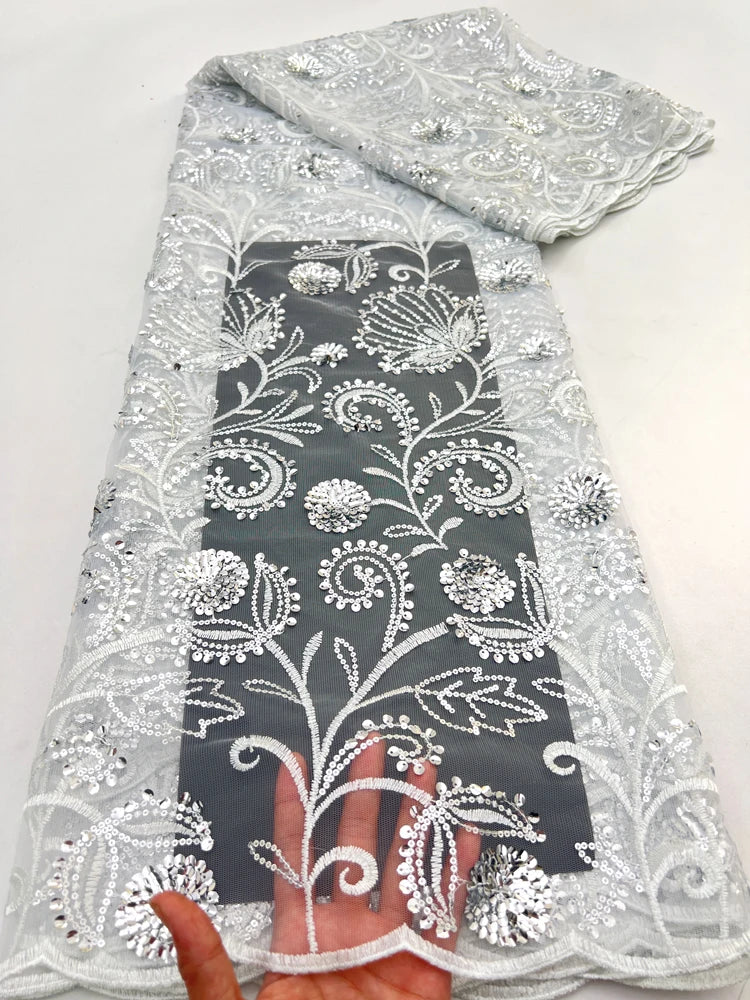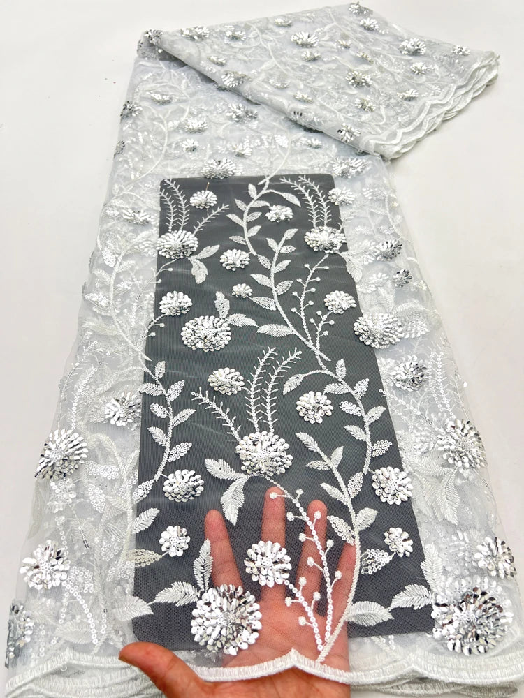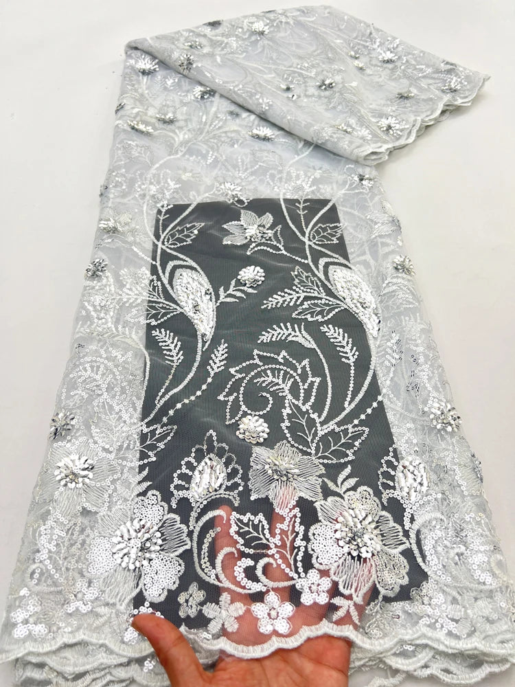 ثوب تُل فرنسي طول 4.5 متر في عرض 120 سنتمتر من الدانتيل الفاخر المطرز بالزهور و بالترتر و الخرز