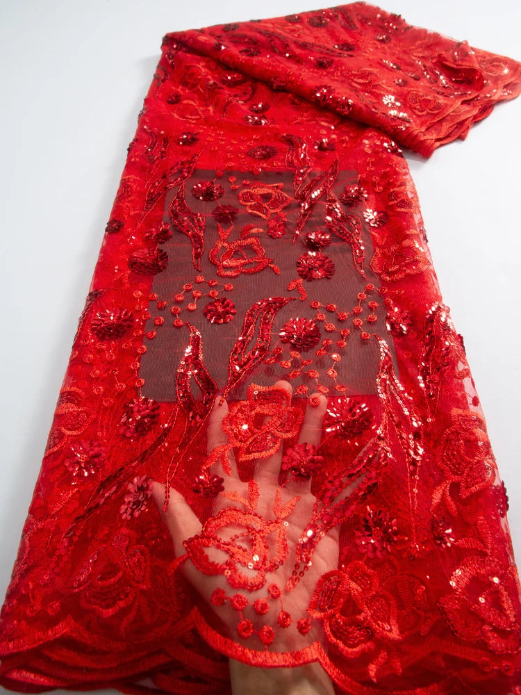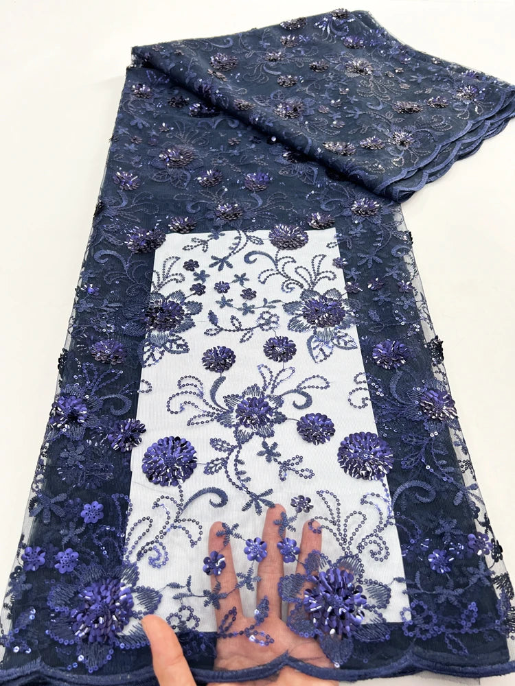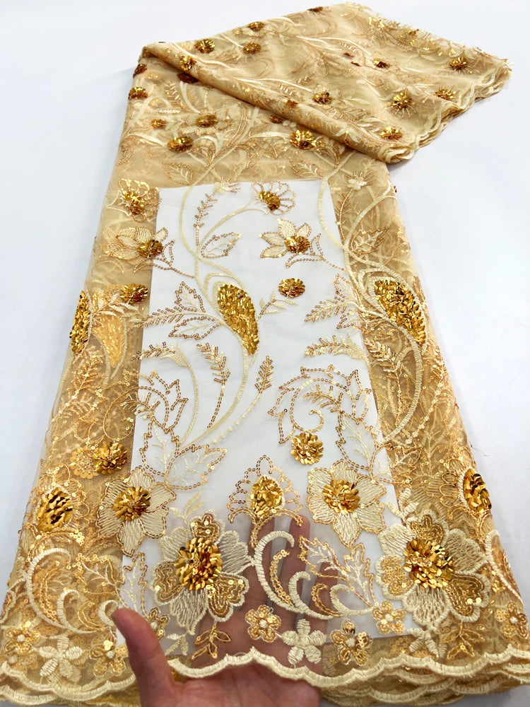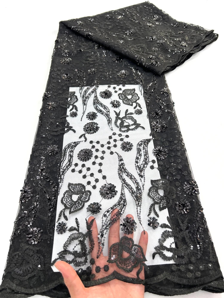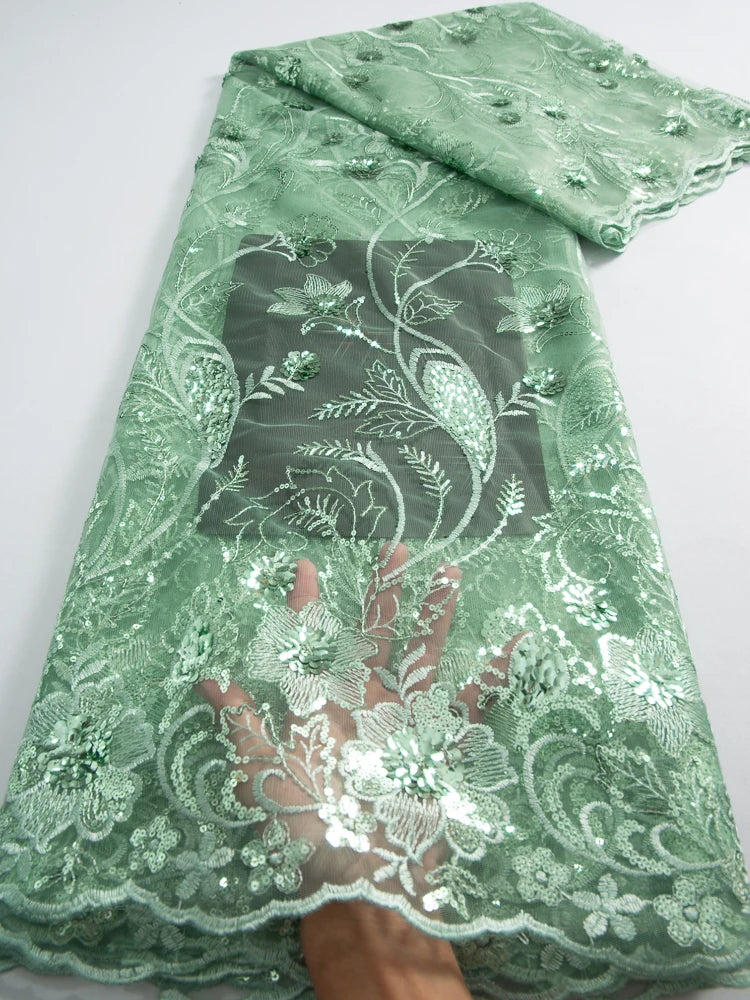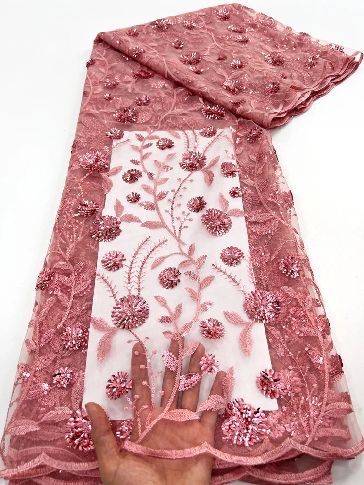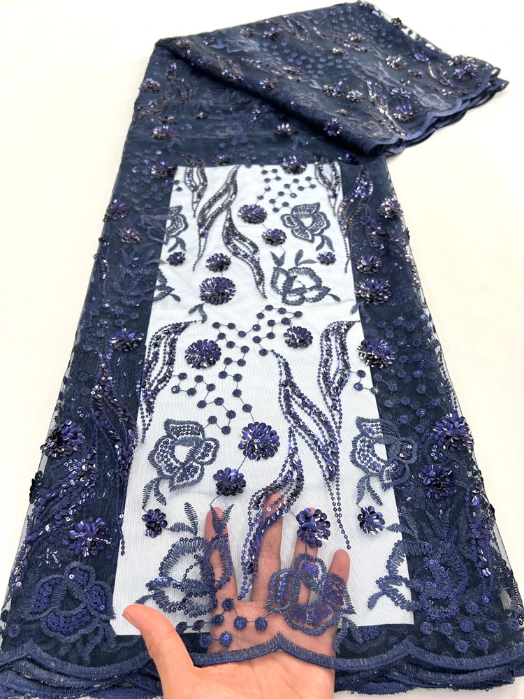 ثوب تُل فرنسي طول 4.5 متر في عرض 120 سنتمتر من الدانتيل الفاخر المطرز بالزهور و بالترتر و الخرز