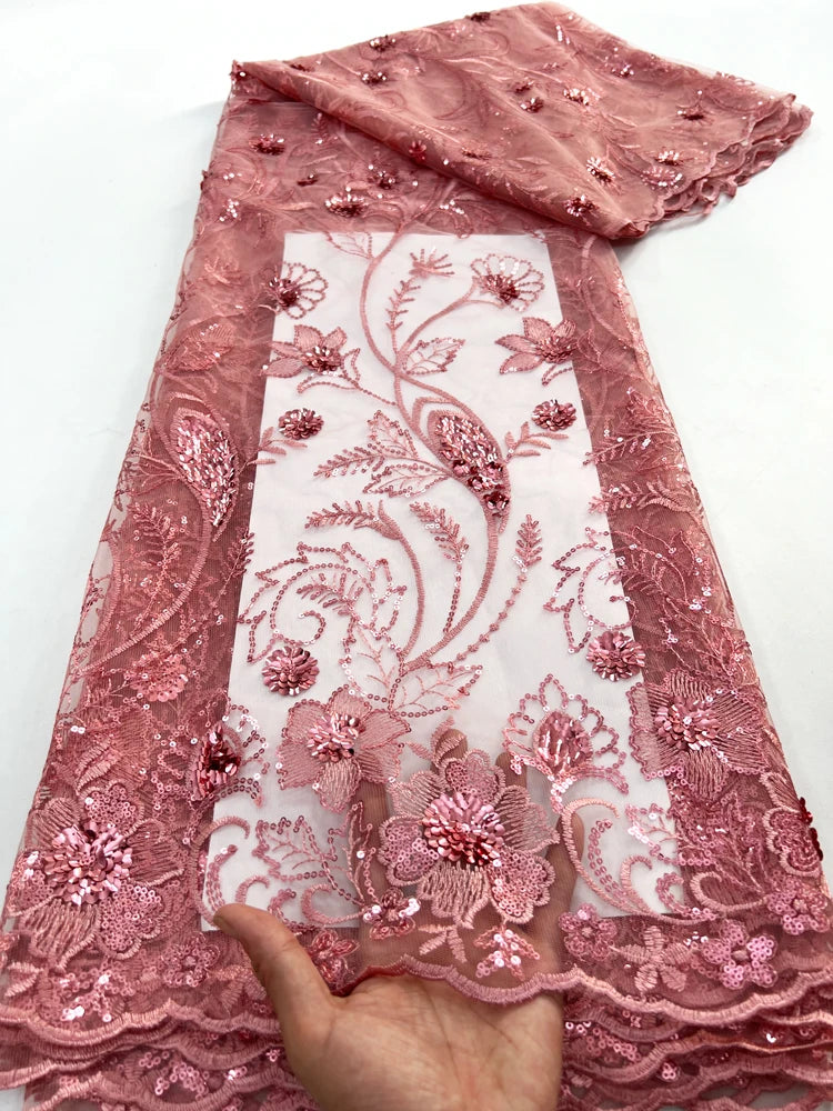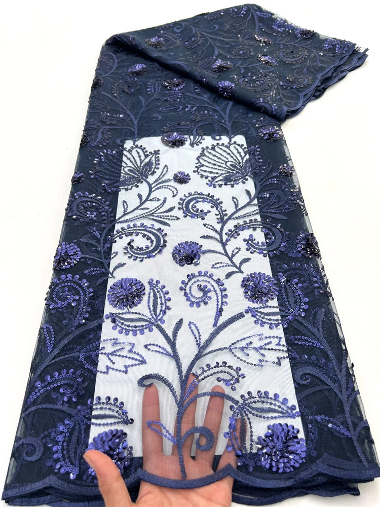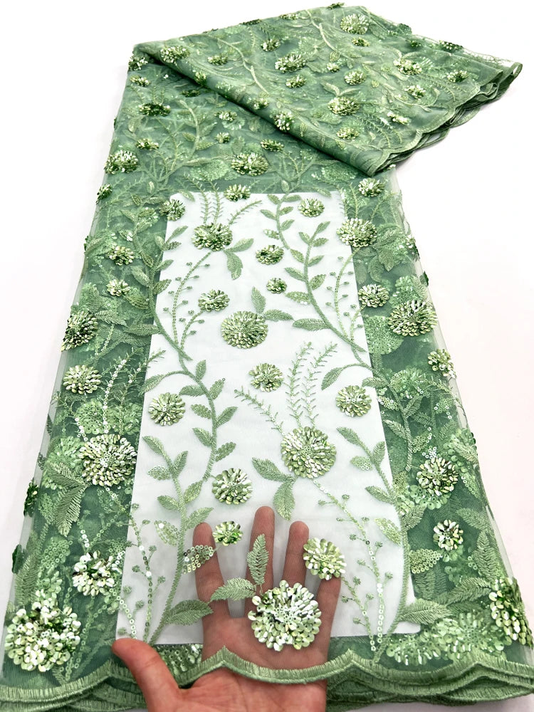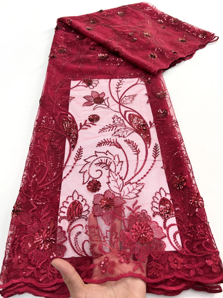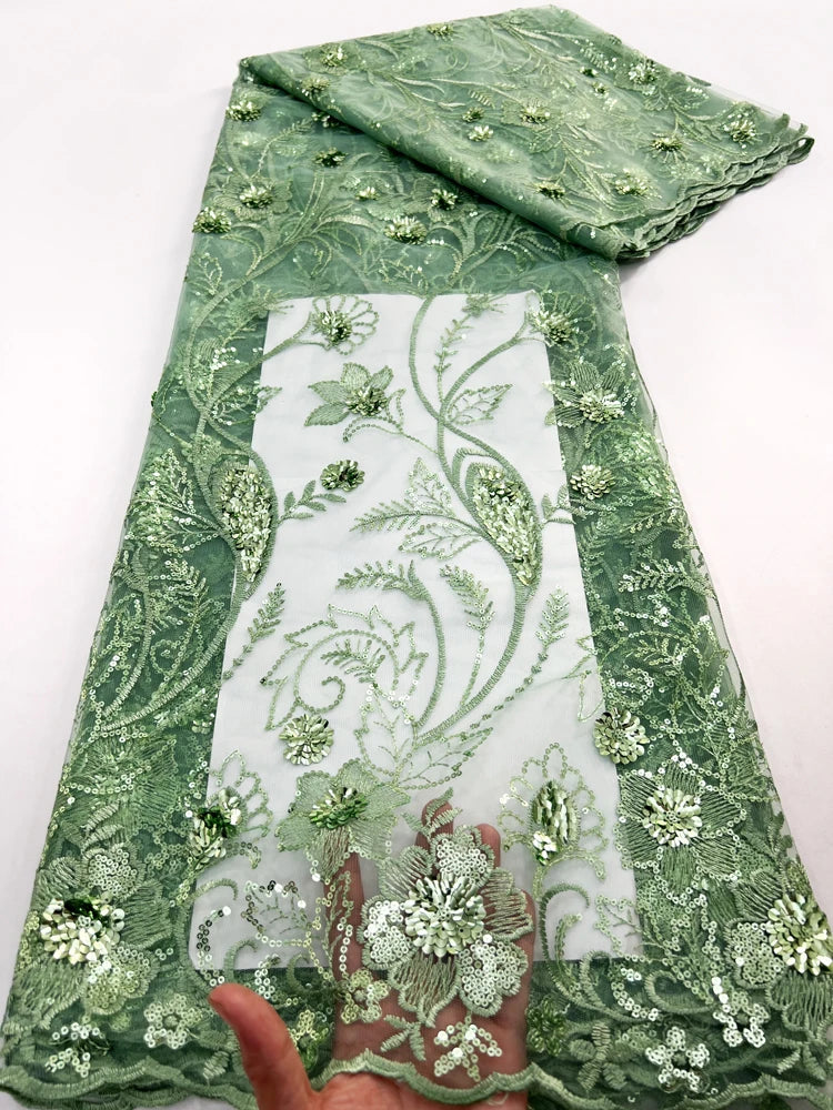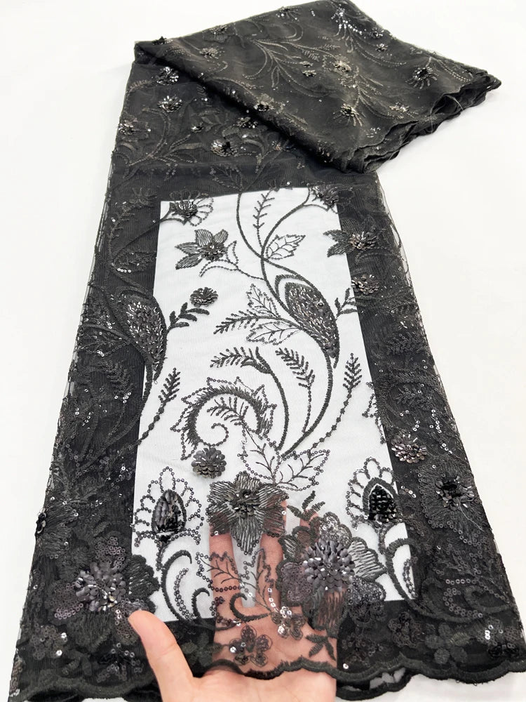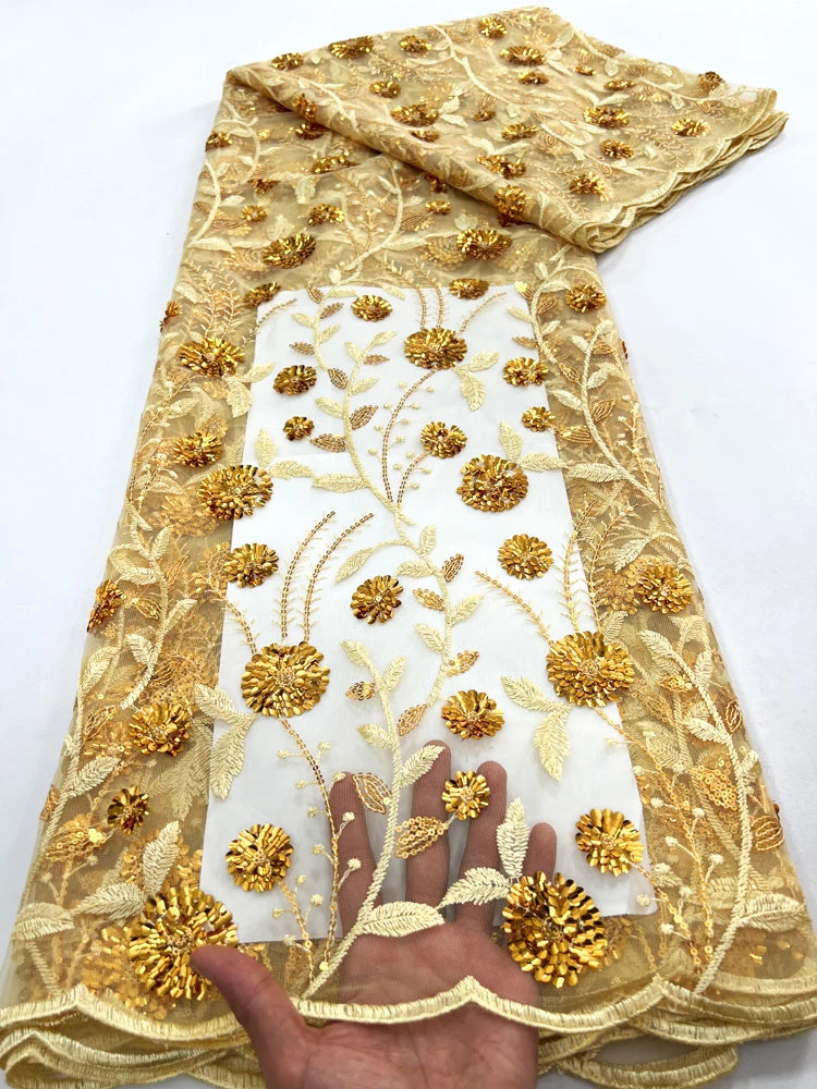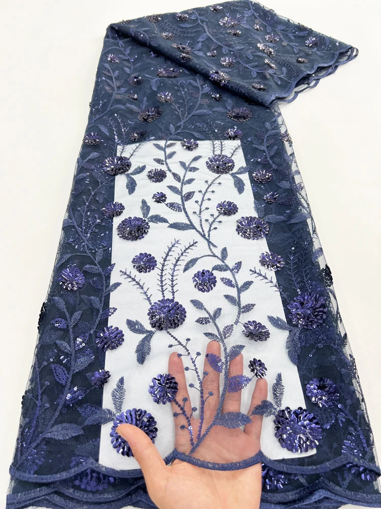ثوب تُل فرنسي طول 4.5 متر في عرض 120 سنتمتر من الدانتيل الفاخر المطرز بالزهور و بالترتر و الخرز