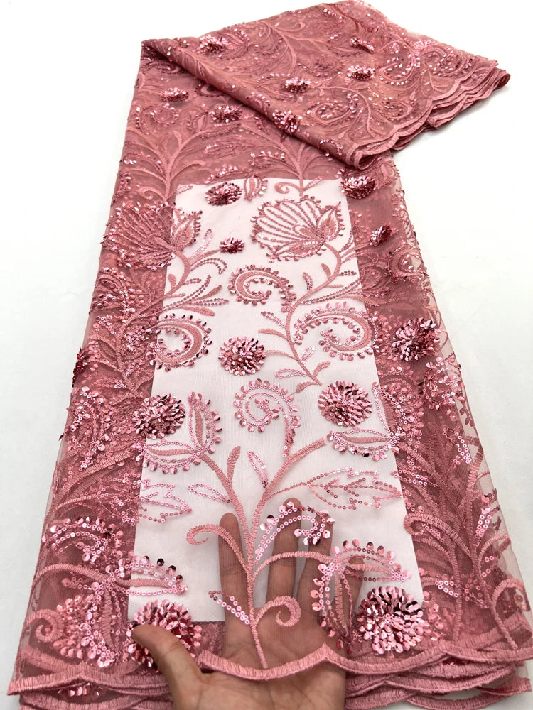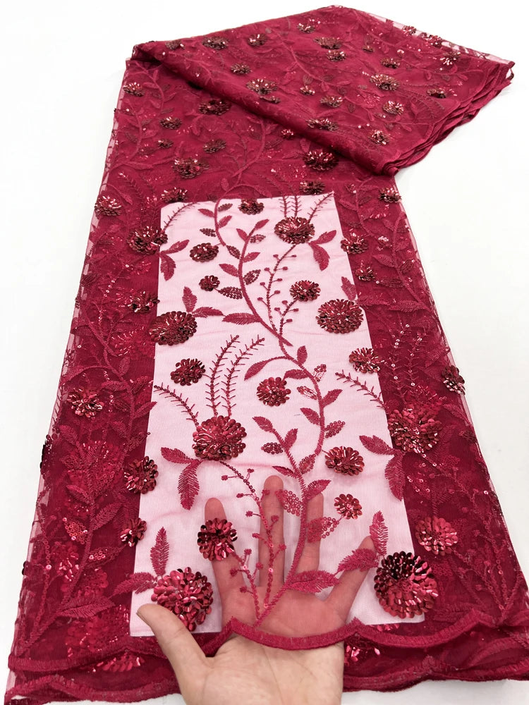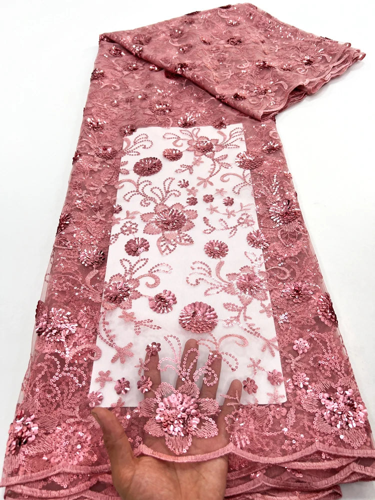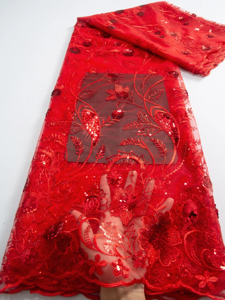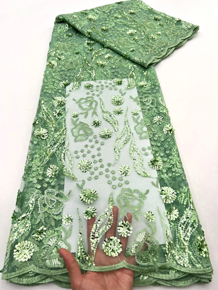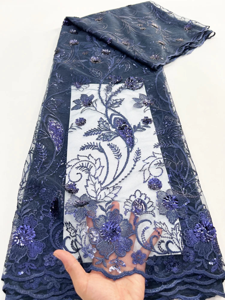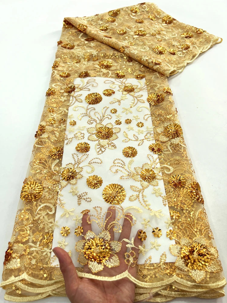 ثوب تُل فرنسي طول 4.5 متر في عرض 120 سنتمتر من الدانتيل الفاخر المطرز بالزهور و بالترتر و الخرز