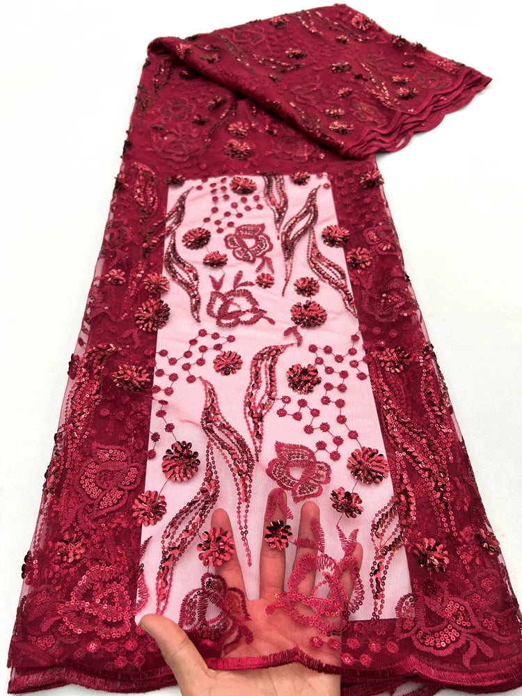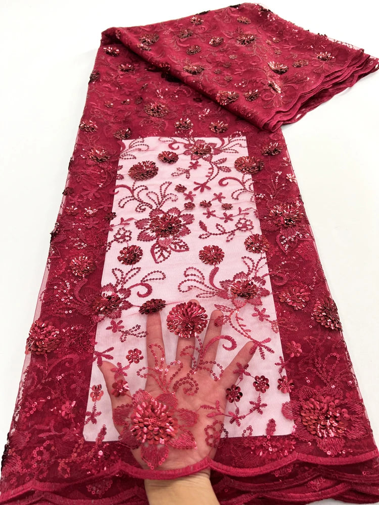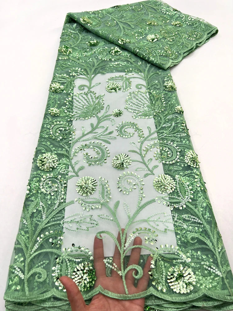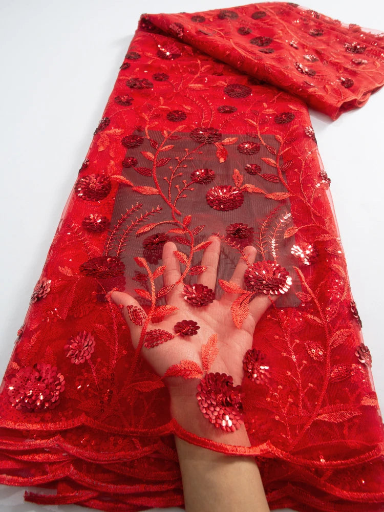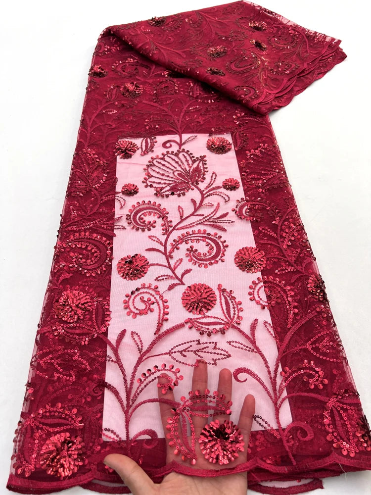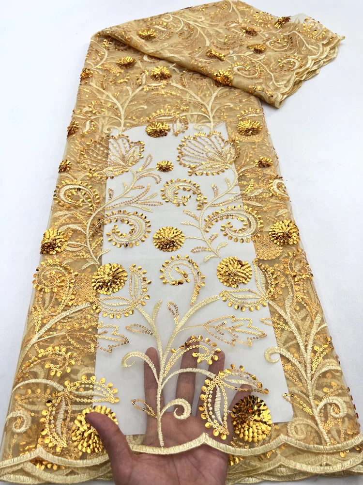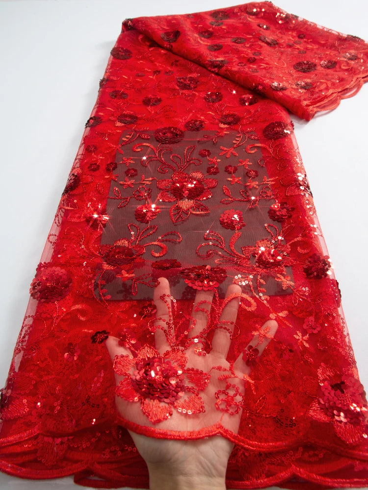 ثوب تُل فرنسي طول 4.5 متر في عرض 120 سنتمتر من الدانتيل الفاخر المطرز بالزهور و بالترتر و الخرز