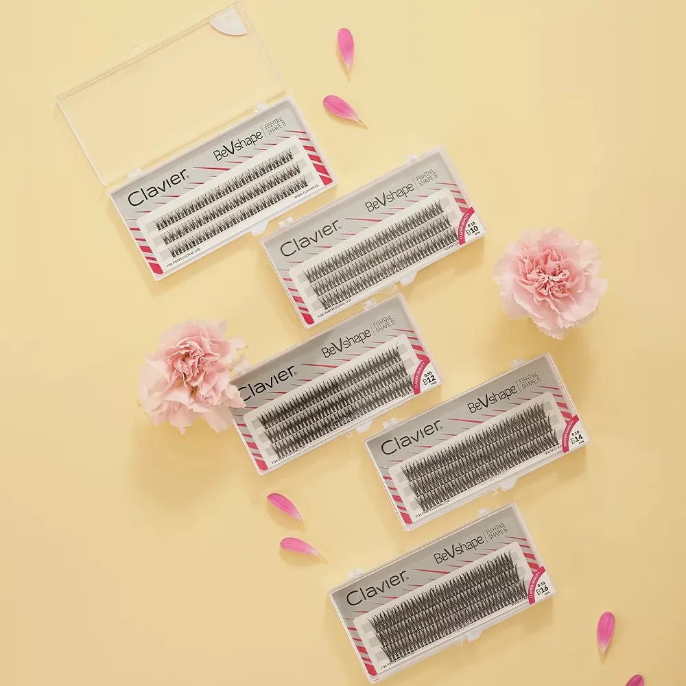 Clavier Natural Cluster Eyelash BeVshape Fishtail Shape B Curling Lash 10D Silk Soft Eyelashes Professional Makeup Tools