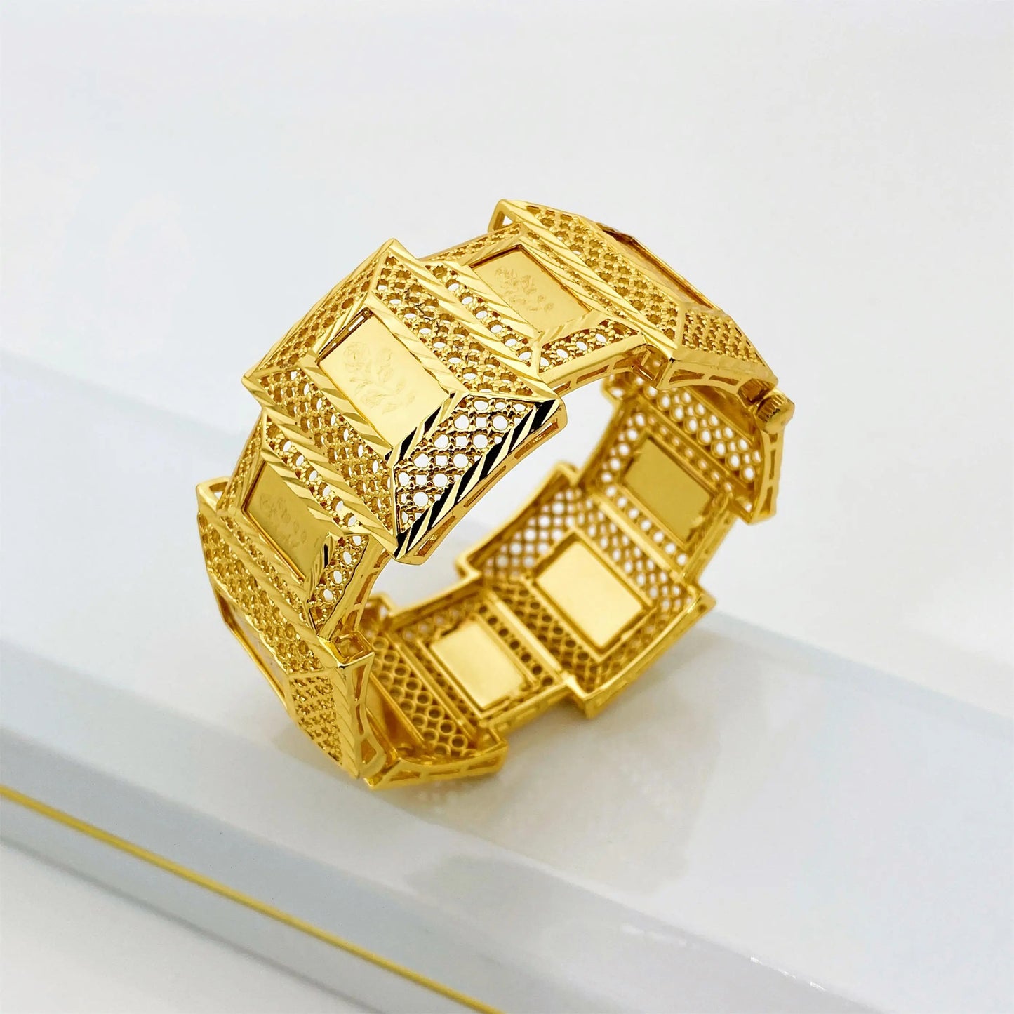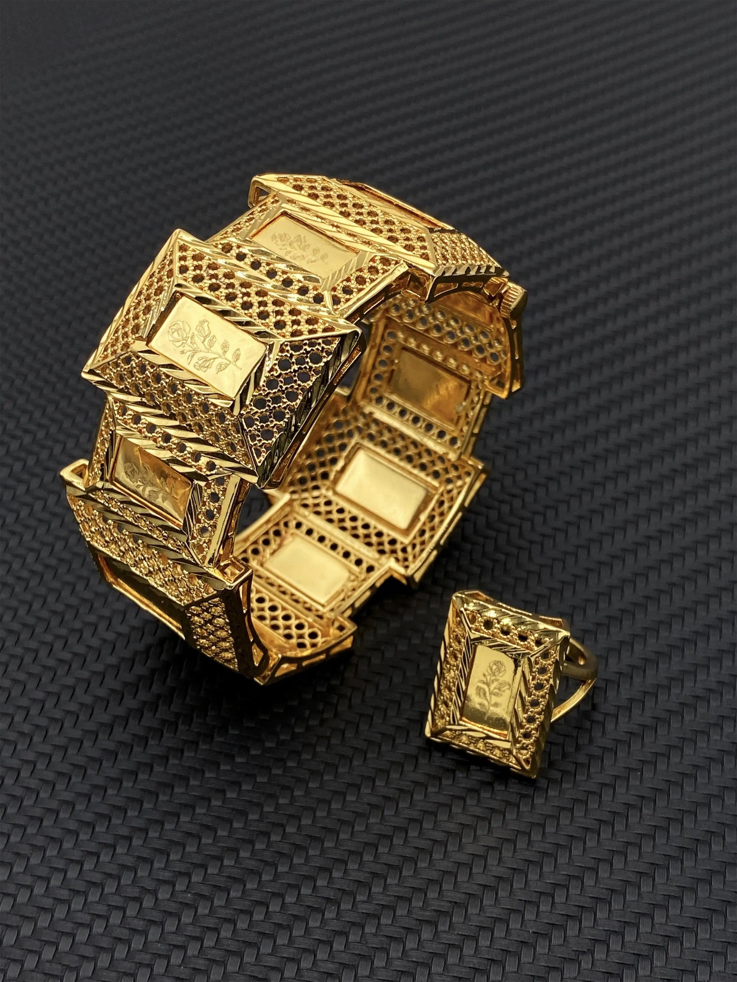 Dubai Golden African Style Bracelet, Shiny Zircon Stone, Perfect For Parties, Occasions Jewelry