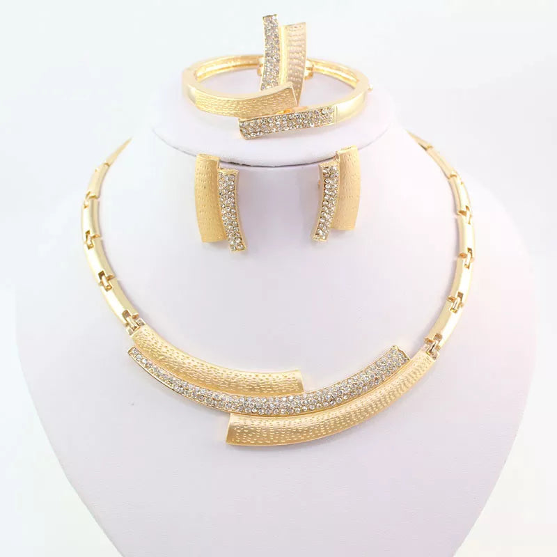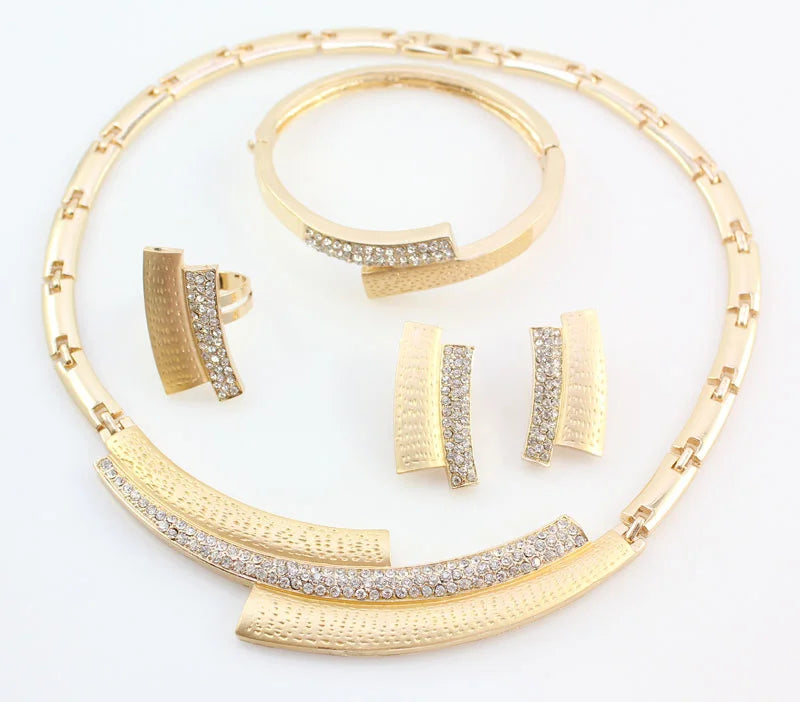 Fashion Wedding Bridal Crystal Rhinestone Jewelry Sets African Beads Dubai Gold Color Statement Jewellery Costume