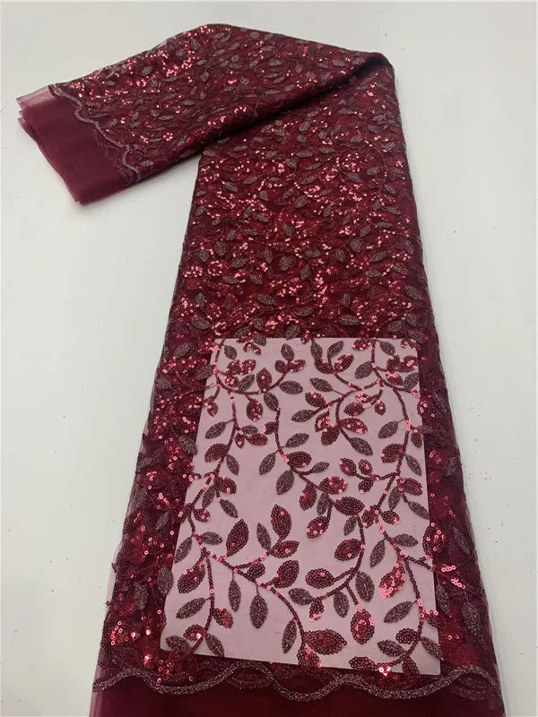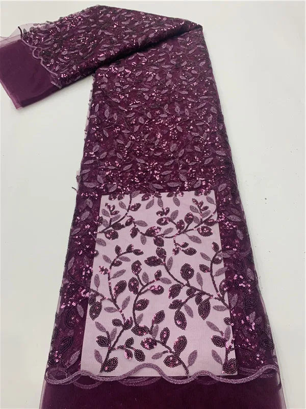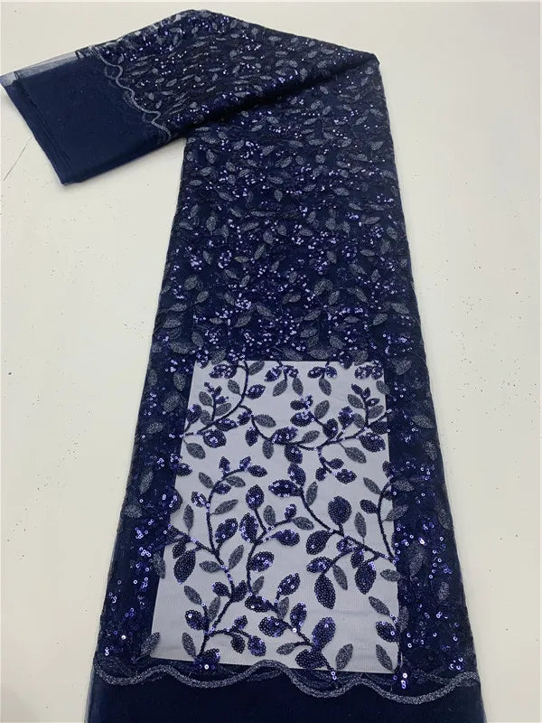 ثوب تُل فرنسي طول 4.5 متر في عرض 120 سنتمتر من الدانتيل الفاخر المطرز بالترتر و الخرز