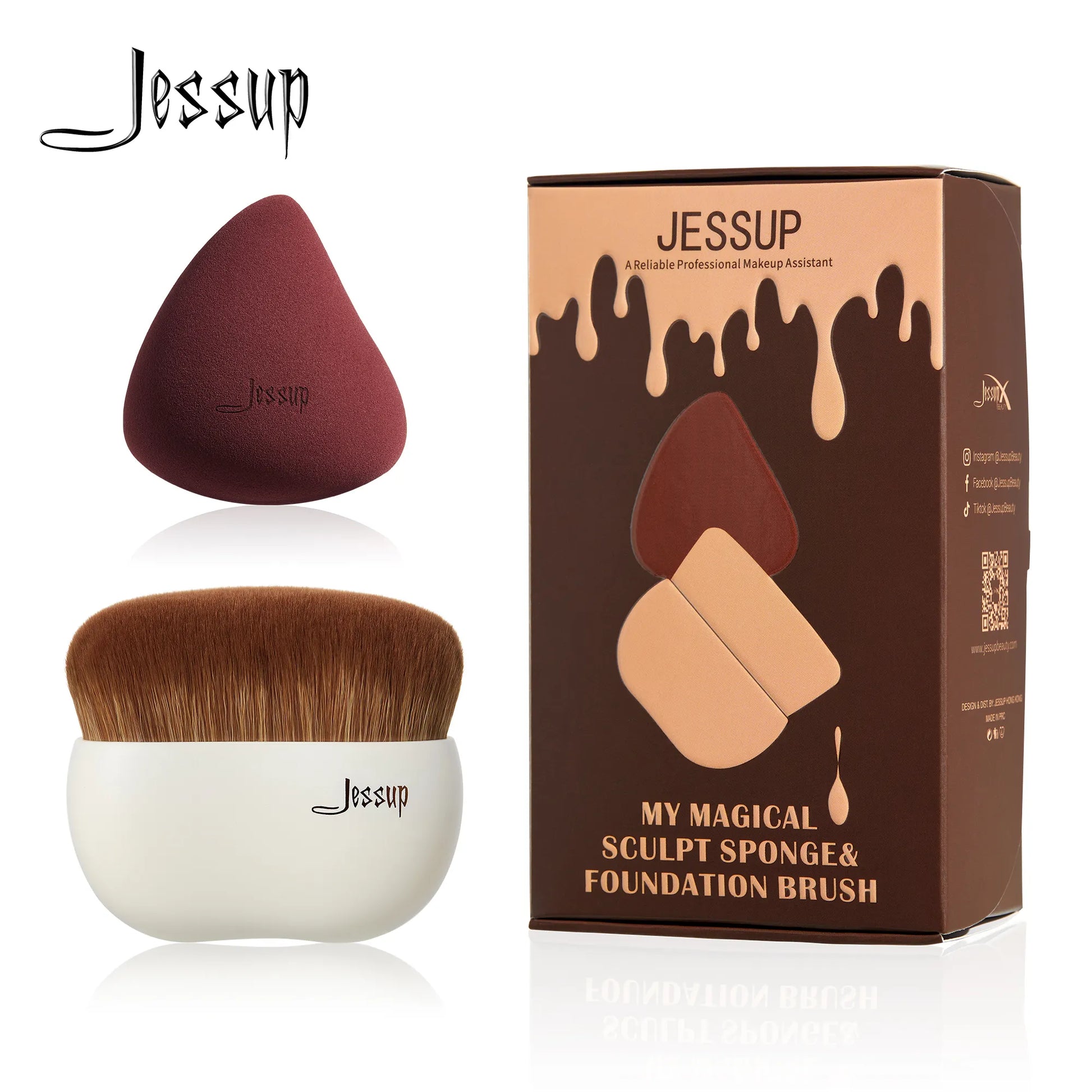 Jessup Makeup Brush Foundation Brush with Makeup Sponge,Contour Blush Concealer Highlight