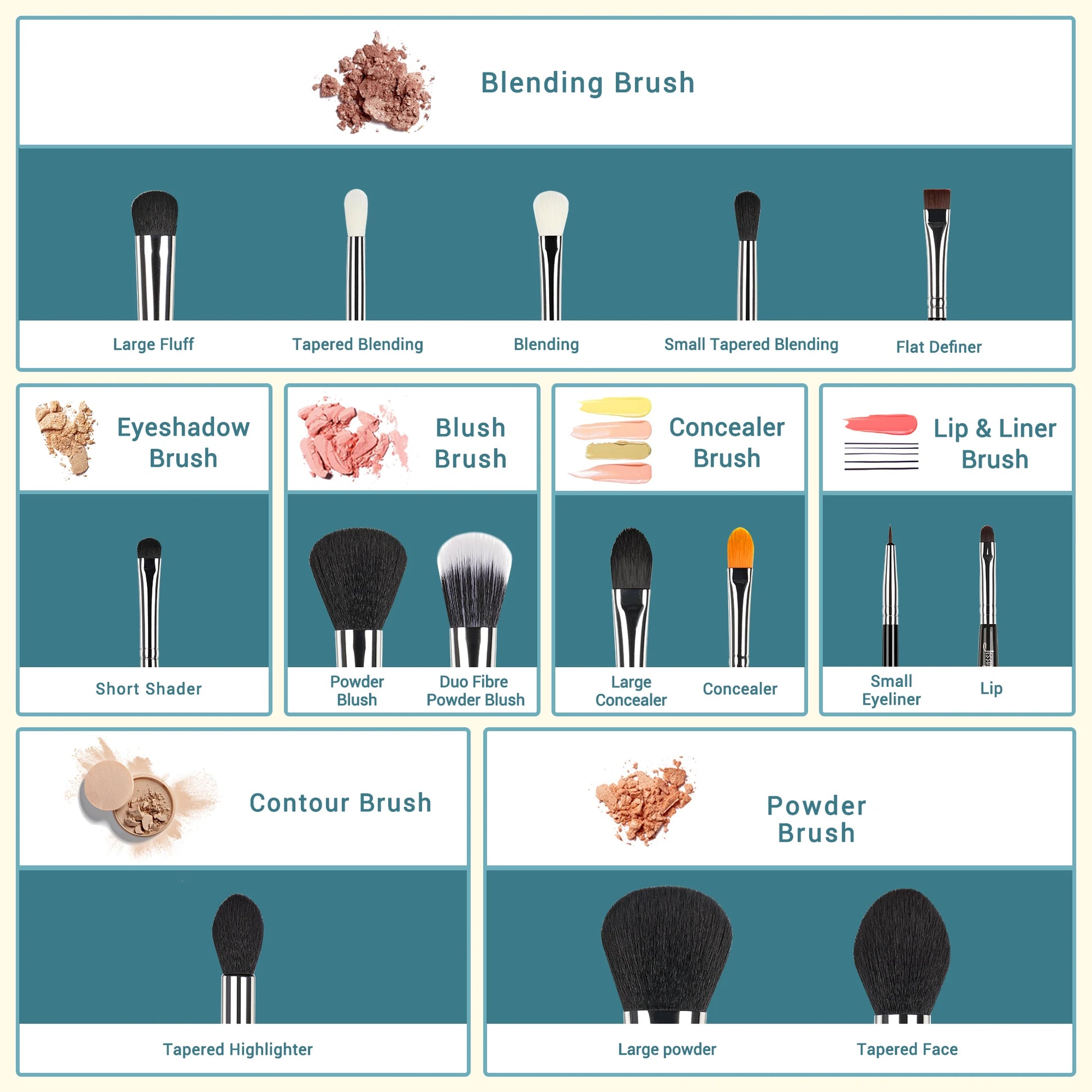 Jessup Pro Makeup Brushes Set 15pcs Cosmetic Make up Powder Foundation Eyeshadow Eyeliner Lip Black T092