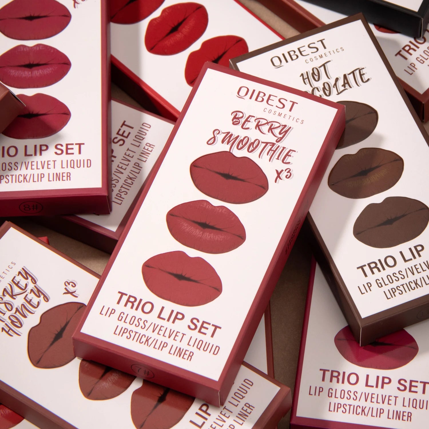 New 3pcs/set Liquid Lipstick Lip Liner Long Lasting Cosmetic Black Brown Purple Red Matte Lip Gloss Nude Lip Tint Stain Makeup