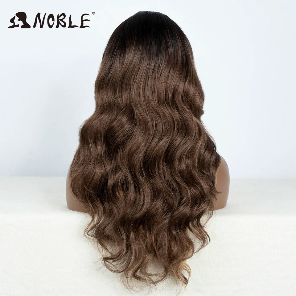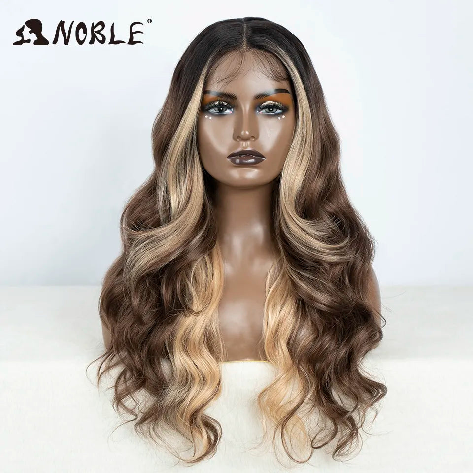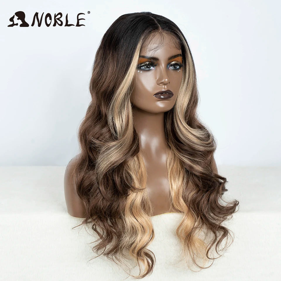 Noble Lace Front Wig Synthetic 28“ Highlight Honey Brown Body Wave Wig Blonde Wigs For Women Lace Wig Synthetic Lace Front Wig