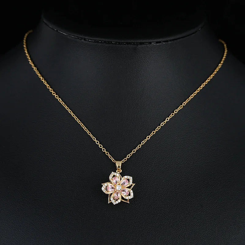 Rotating Bauhinia Zirconia Flowers Niche Light Luxury New Design Pendant Temperament Titanium Steel Necklace