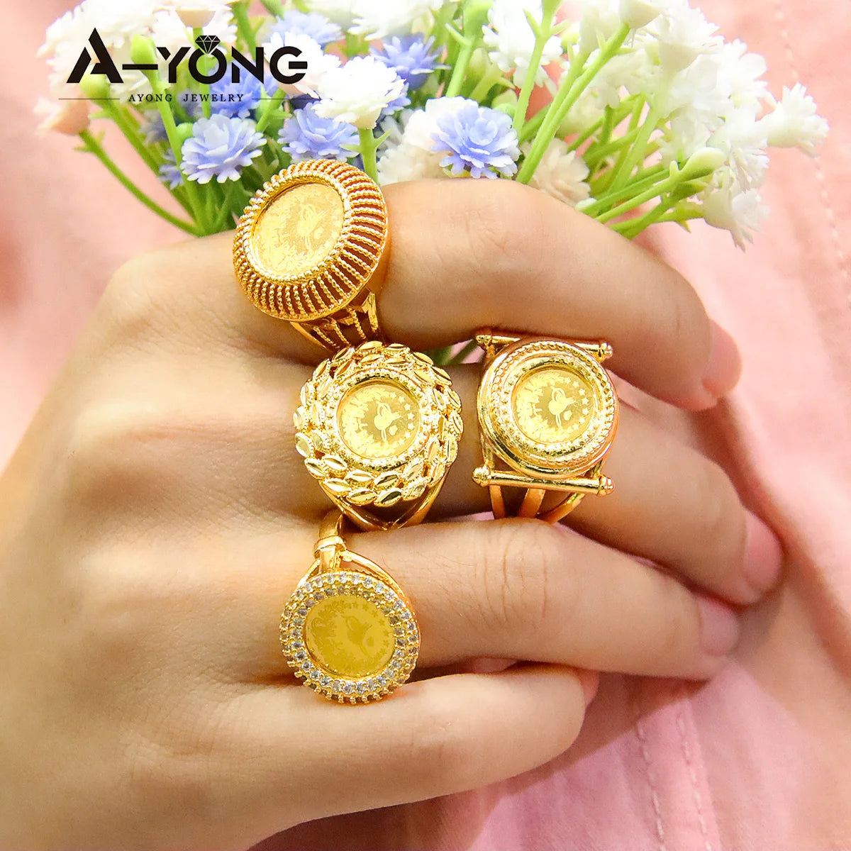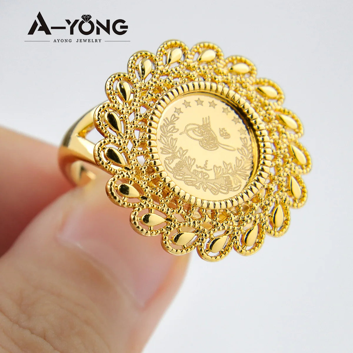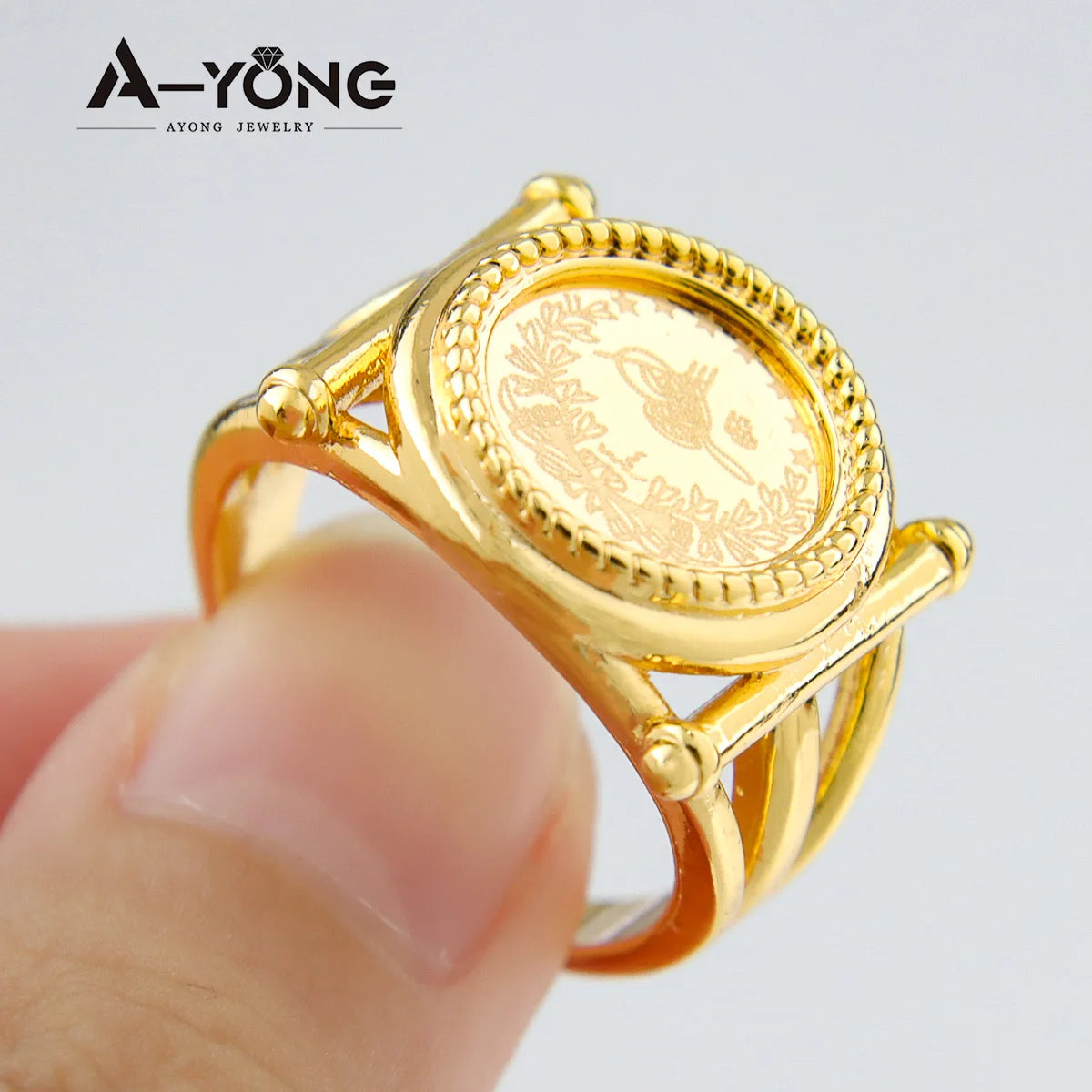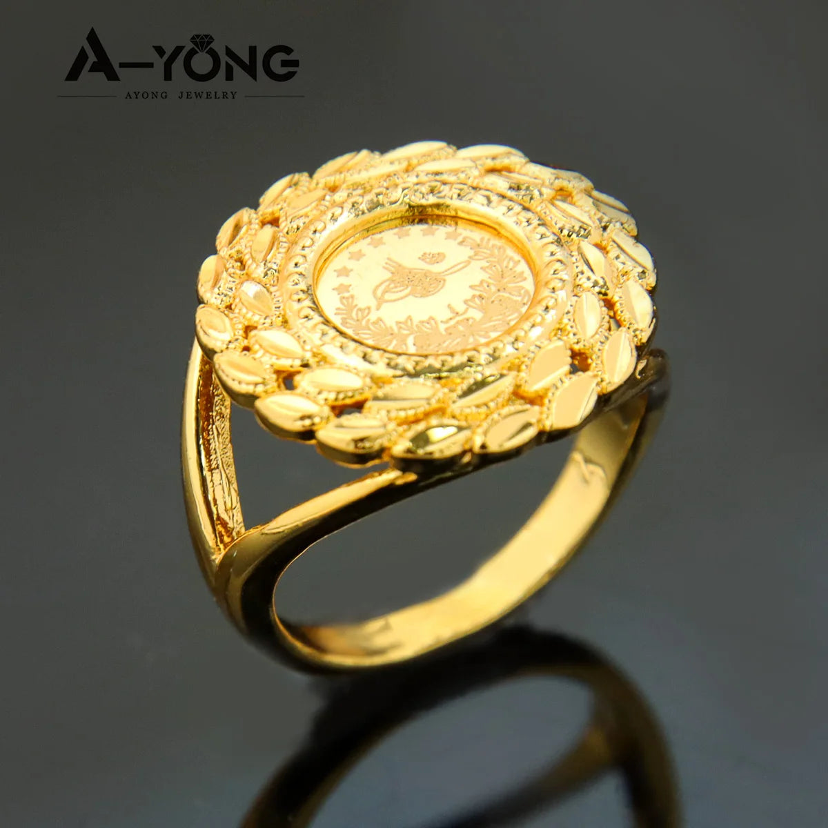Turkish Coin Gold Rings 18k Gold Plated Zircon Dubai Style for occasions and Party Accessories