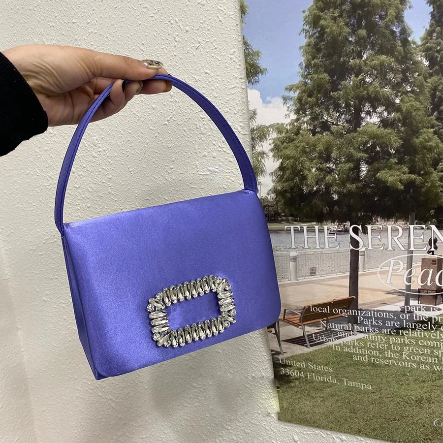 Andralyn Luxury Diamond Square Button Women's Evening Bag Party Clutch Purses Satin Rhinestone Small Square Bag Chains Shoulder Bag Bolsa